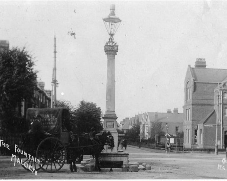 Historic photographs sourced from CAMRA (Campaign for Real Ale) and Maldens & Coombe Heritage Society, used to acknowledge the heritage of the site.